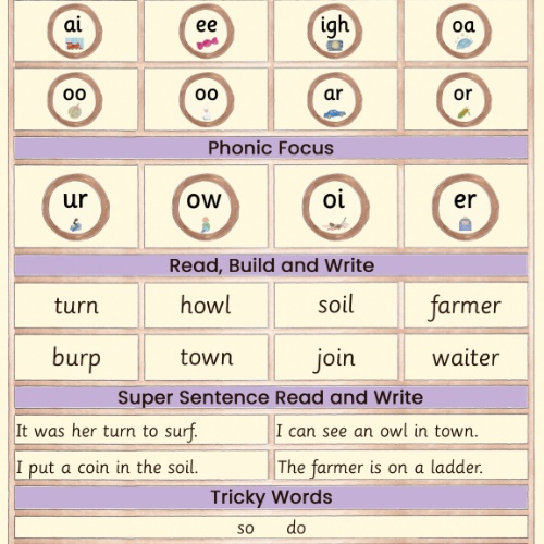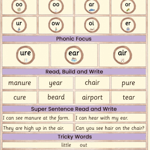 Year 1 will be revising the ear, air and ure sounds this week. See 2 attached phonics letter below.